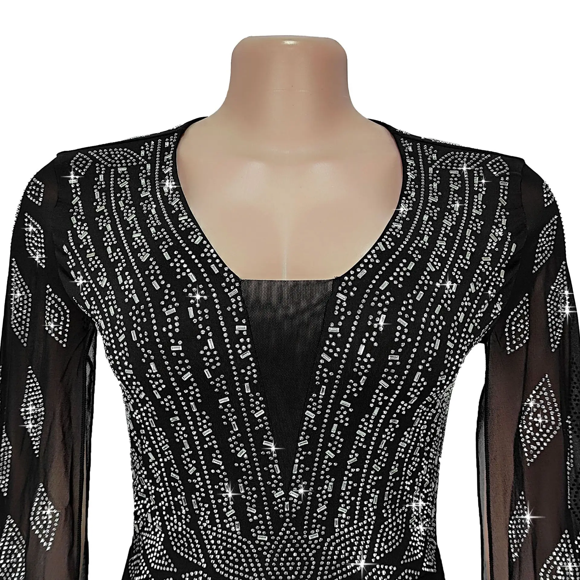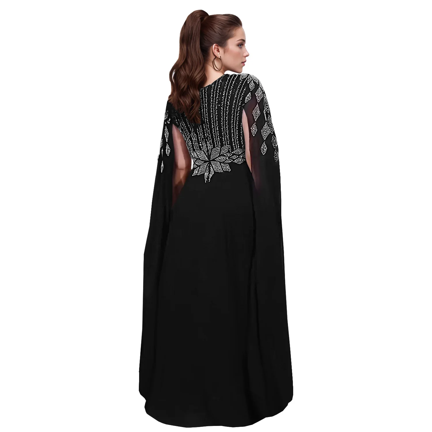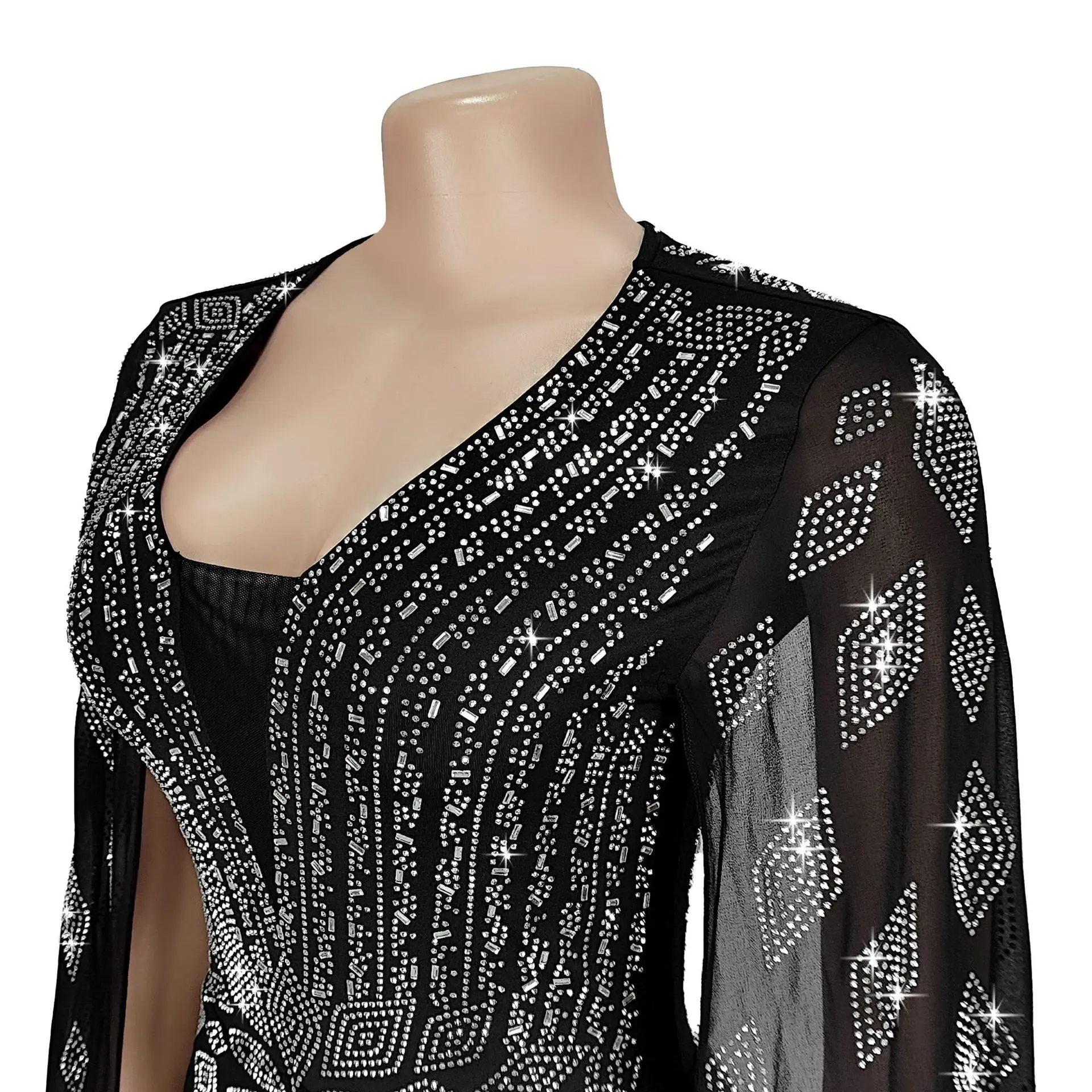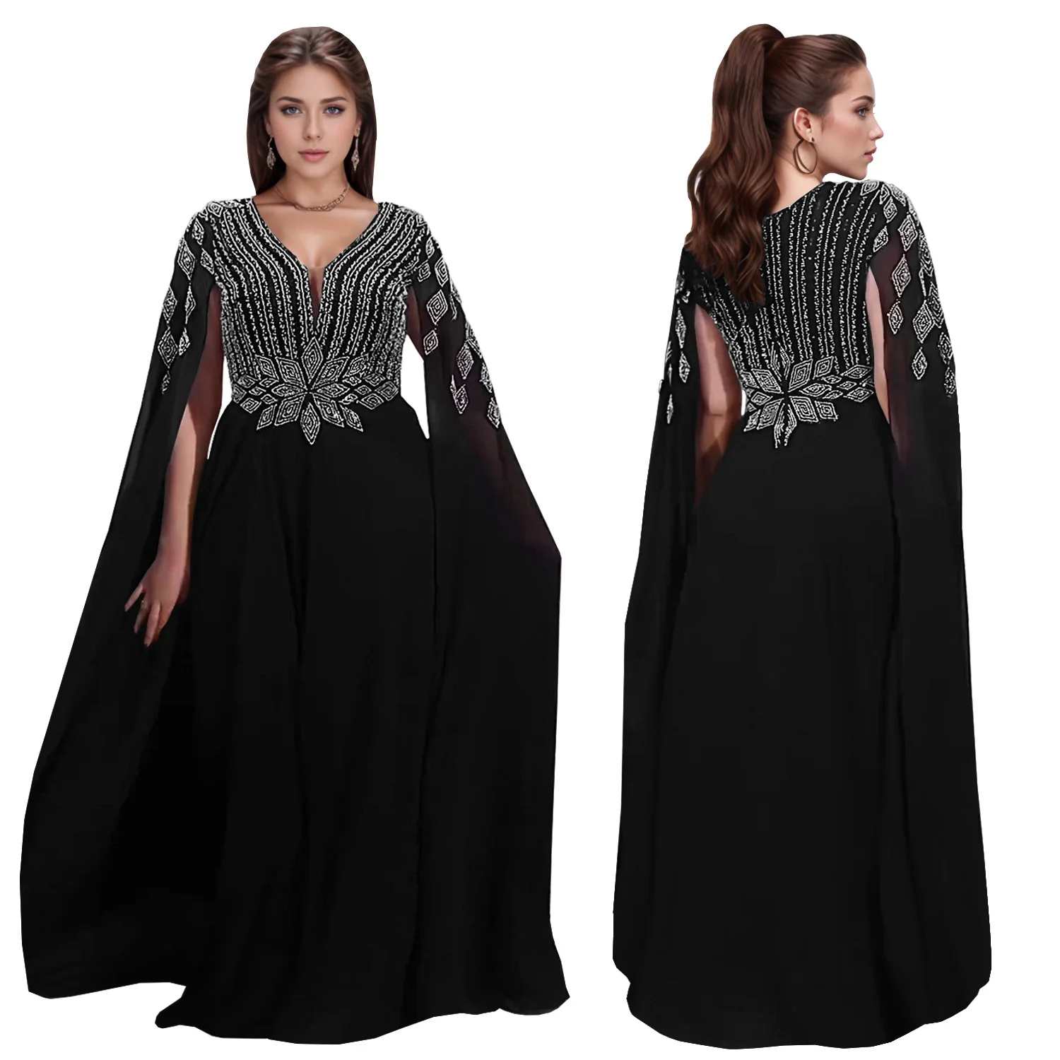 New Arrival Middle East Women Chiffon Maxi Dresses Sexy Solid Color Sheer Mesh Spliced Rhinestone Decor Floor Length Party Dress